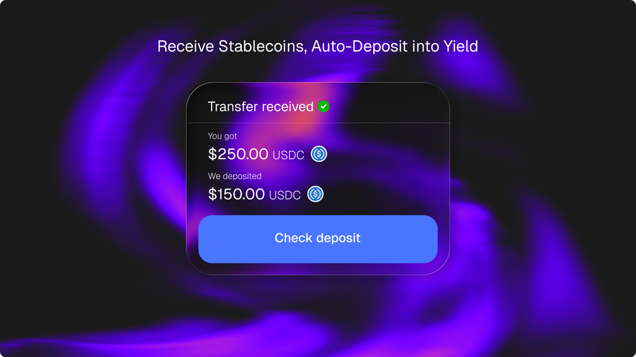 Furthermore, for businesses receiving stablecoin payments through our invoice tool, a portion of every incoming payment can auto-route straight into your yield account the moment funds arrive, so nothing sits idle for even a second.